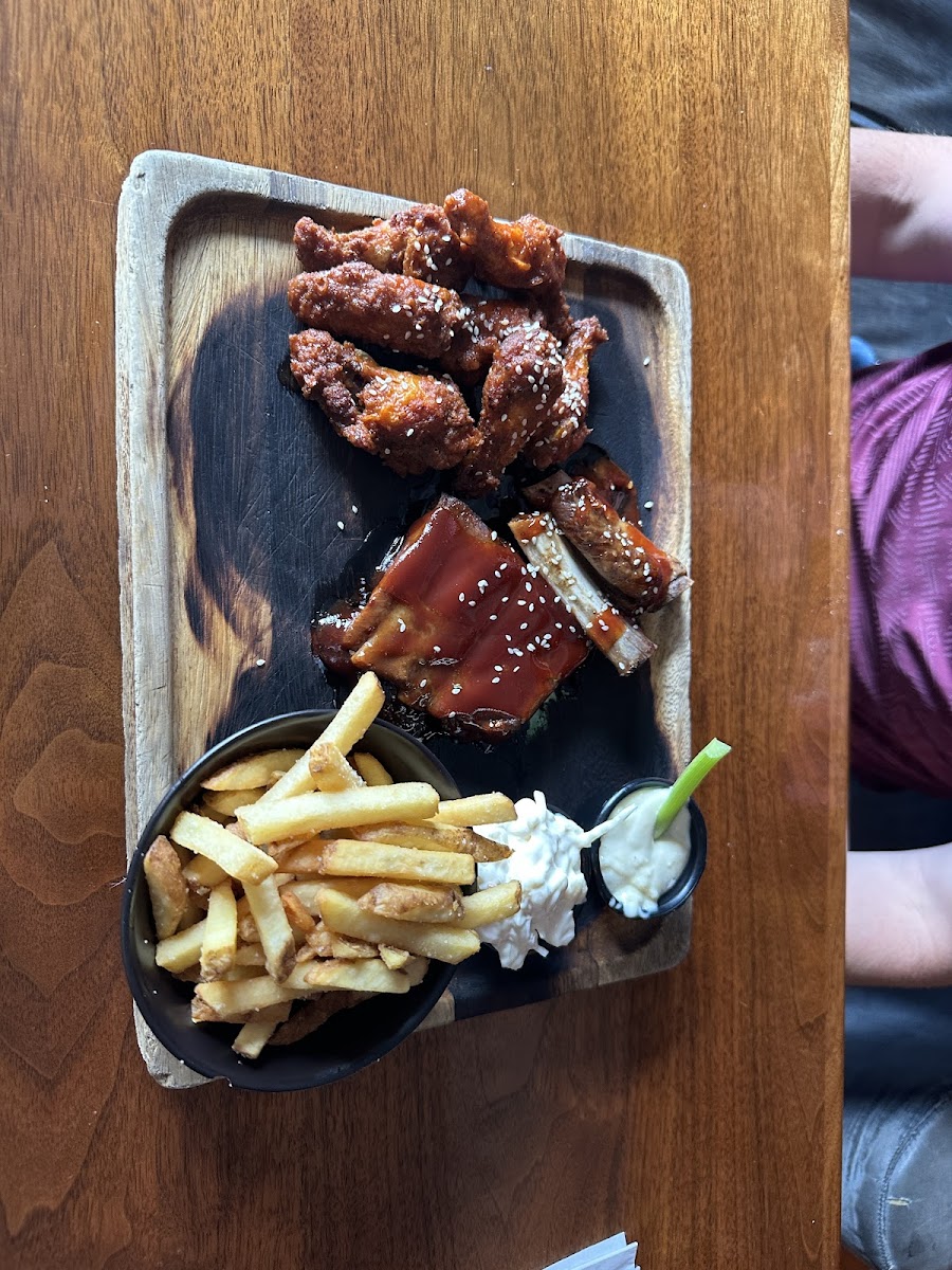 Very friendly service. Nice menu options. Plenty of draft beer available. Ambiance was pleasant and appropriate for a warm setting for dinner. There's a separate dining area from the bar. There is on street parking available. Try the chunky fries. They are delicious.